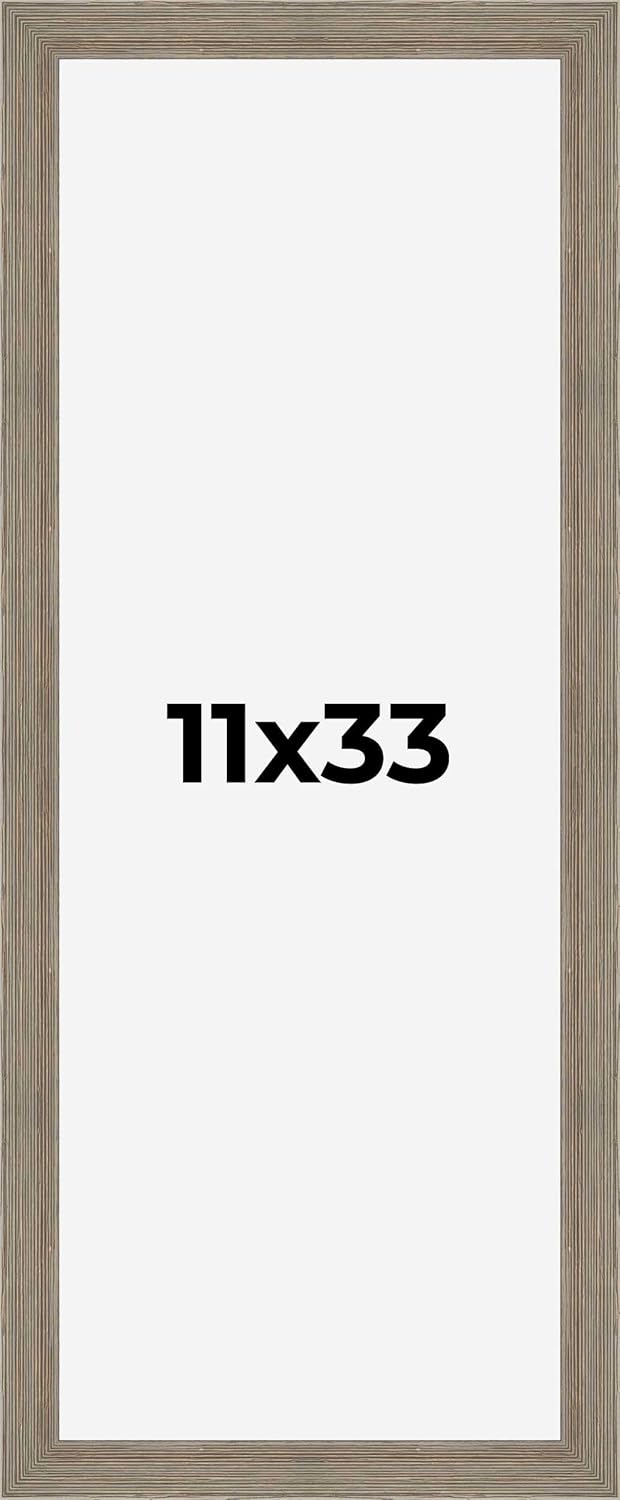 11x33 Frame Grey Real Wood Picture Frame Width 1.5 Inches | Interior Frame Depth 0.5 Inches | Barn Grey Distressed Photo Frame Complete with UV Acrylic, Foam Board Backing & Hanging Hardware