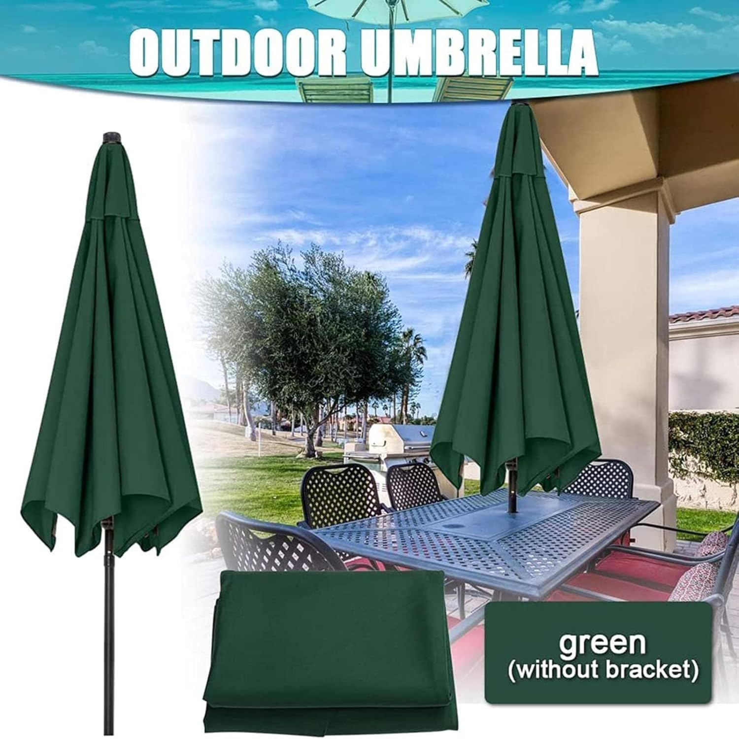 Parasol Umbrella Replacement CanopyDo you want to have a favorite parasol again in the hot summer? Are you worried that the umbrella cover of the patio umbrella is no longer bright because of the wind and the sun? Then this umbrella cover will be a better choice. Not only does it have a lot of colors to give you more options, but it's also of good quality. The umbrella surface is made of UV-resistant, waterproof, anti-corrosion polyester fabric, which is not easy to fade and durable. Remove the old canopy, or replace it with a different color canopy to make it look like you have a new umbrella.Specification:Material: PolyesterFeatures: UV30+ protection, effectively blocking harmful UV raysSize: 2m/2.7m/3mColor: Black, White, Red, Green, KhakiFits: 6/8 ribsDaily Care: Removable and washable, easy to clean and assemble after use, no tools requiredUses: Suitable for wooden, steel and aluminum umbrella standsThe package includes:1 x Parasol Covernotes:1. Manual measurement, please allow 1~3mm error, thank you.2. Due to the difference of different monitors, the picture may not reflect the actual color of the item. We guarantee the style is the same as the picture.
