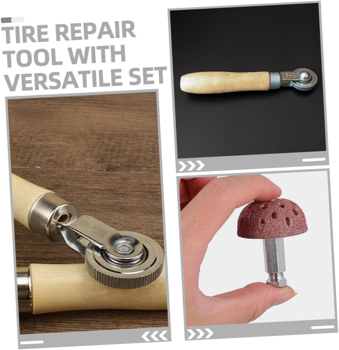 Package List 5 x roller 5 x roller head Characteristics -Material:Wood,Tungsten steel alloy car repair tools -Color:Assorted Color tire glue repair -Size:27.00X7.00X3.50cm/10.61X2.75X1.38in heavy duty tire repair kit -Size:5.00X4.00X4.00cm/1.97X1.57X1.57in Tire Repair Rollers -Tire repair tool with versatile set including a wooden rake and wheel for convenient use car tire tool. -The high-speed grinding head of the tire repair tool allows for and efficient tire repair tubeless tire sealant injector. -The wooden rake and wheel design of the tire repair tool provides added convenience during repairs tire repairing tools. -The bowl-shaped low-speed grinding head of the tire repair tool ensures smooth and efficient repairs car tire rollers. -The tire repair tool is known for its reliable quality and strong durability, ensuring long-lasting performance sidewall tire repair kit.Goods InformationTire Patch Roller With reliable quality and strong durability, it is suitable for repairing tires of various vehicles.tire glue repair It is designed to conveniently repair tires with its wooden rake and wheel.car tire tool The set also includes a bowl-shaped low-speed grinding head and a high-speed grinding head to meet different repair needs