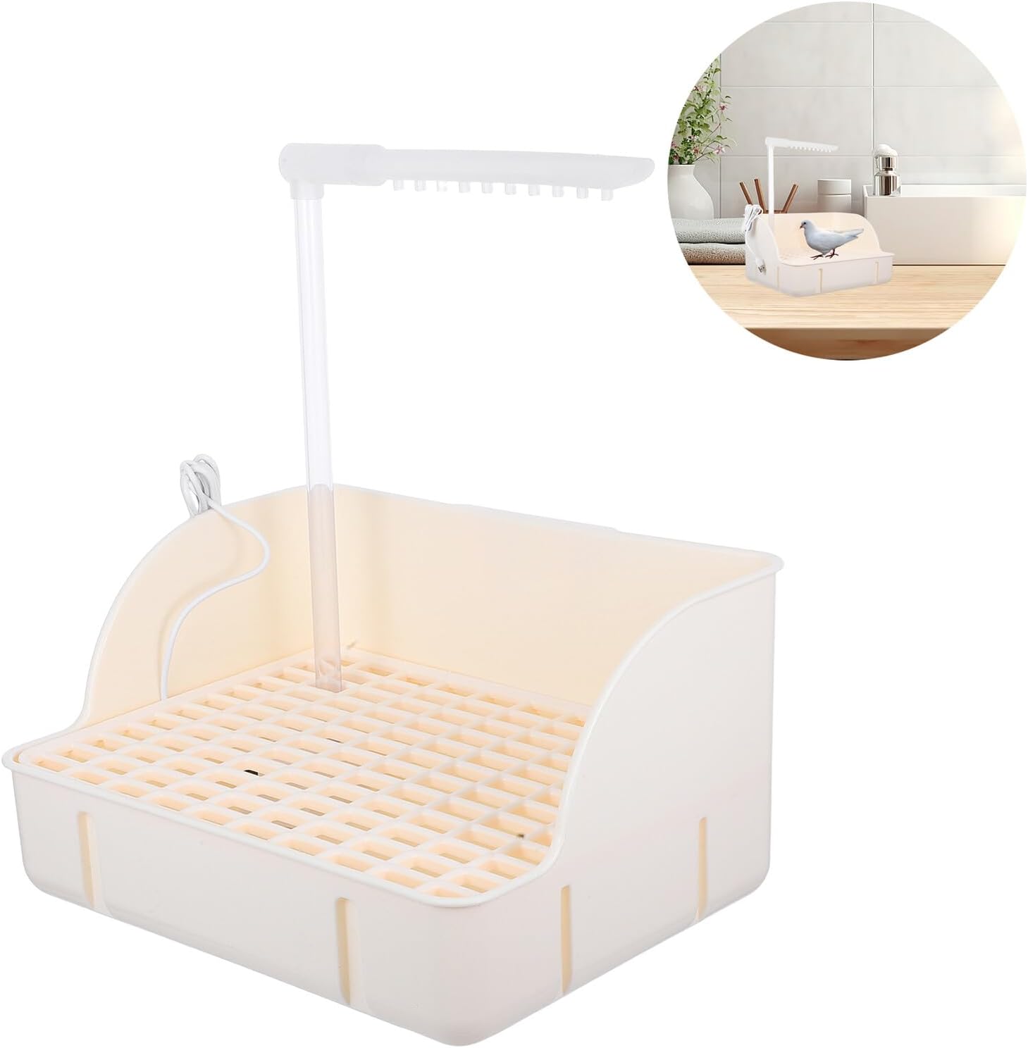 Package List 1pc automatic bathtub Characteristics -Easy to clean and maintain: the unique bath basin design ensures easy cleaning and maintenance, keeping your pet's living environment tidy small bird baths for outdoors. -Natural rainfall simulation: the Circulating Faucet mimics natural rain, helping your and anxiety during bath time bird automatic bathtub. -Material:Plastic -Interactive bath : combines innovative elements with bathing functions, enhancing interaction and bonding with your pet bird tub bath. -Color:White -Automatic circulation design: reduces water waste while providing your pet with a continuous flow of water for a refreshing bath experience bird tub. -Product Info: Bird Automatic Bathtub -Size: 33.00X29.20X21.50cm/12.97X11.48X8.45in -Spacesaving : ideal for homes with pets and space, no need for large pools or bathtubs, offering convenient cleaning anytime, anywhere pet bathing pool.Goods Descriptionbird baths for outdoors The circulating water system ensures fresh water flow, making bath time enjoyable.bird bathtub This bird bath with an automatic shower feature offers a fun and efficient way for your to stay clean.automatic bath shower Its compact design fits well in various settings, whether indoors or outdoors, providing a refreshing experience for birds of all sizes