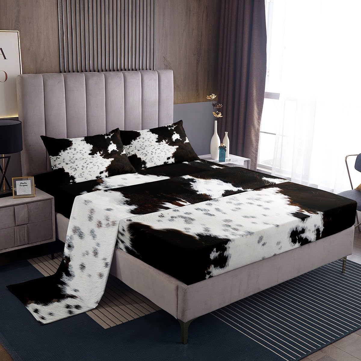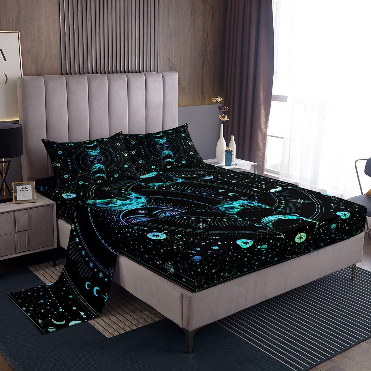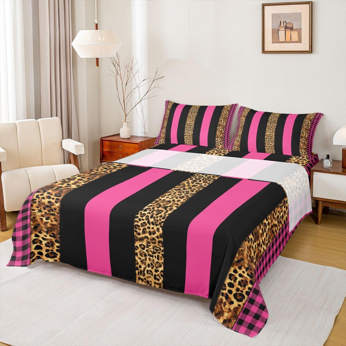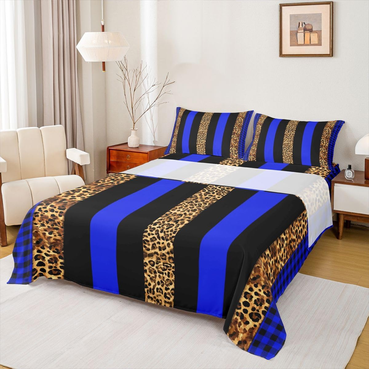 Package Include: Fitted Sheet, Flat Sheet and Pillowcase. High quality Fitted Sheet Set 3D Pattern Bedding Set, simply decorating your rooms any time you want, bringing you fresh feel for year round use. Size Information: Twin size 3pcs Fitted Sheet set: 1 Fitted Sheet 39"W x 75"L x 16"H, 1 Flat Sheet 66"W x 96"L, 1 pillowcase 20" x 30" Full size 4pcs Fitted Sheet set: 1 Fitted Sheet 54"W x 75"L x 16"H, 1 Flat Sheet 81"W x 96"L, 2 pillowcase 20" x 30" Queen size 4pcs Fitted Sheet set: 1 Fitted Sheet 60"W x 80"L x 16"H, 1 Flat Sheet 90"W x 102"L, 2 pillowcase 20" x 30" King size 4pcs Fitted Sheet set: 1 Fitted Sheet 78"W x 80"L x 16"H, 1 Flat Sheet 90"W x 106"L, 2 pillowcase 20" x 36" Personalize your bedroom: Beautiful design and colorful print, makes your bedroom unique and brings you a wonderful dream. Washing instructions: Machine wash separately in cold water,hang dry, do not bleach. Occasion: The soft Fitted Sheet bedding sets designed for Children ,Adult, Men, Women, Teens. This Bedding set is also suitable for full seasons, Spring, Summer, Autumn and Winter. More Decor: Search our store to get more christmas theme, new year theme, autumn fall theme, any holiday theme, modern abstract, farmhouse rustic theme, simple pattern, garden flowers etc. home decoration. Warm Tips: 1.Please allow 1-3cm error due to manual measurement. 2. Actual color may vary from the color on your screen due to monitor color restrictions.