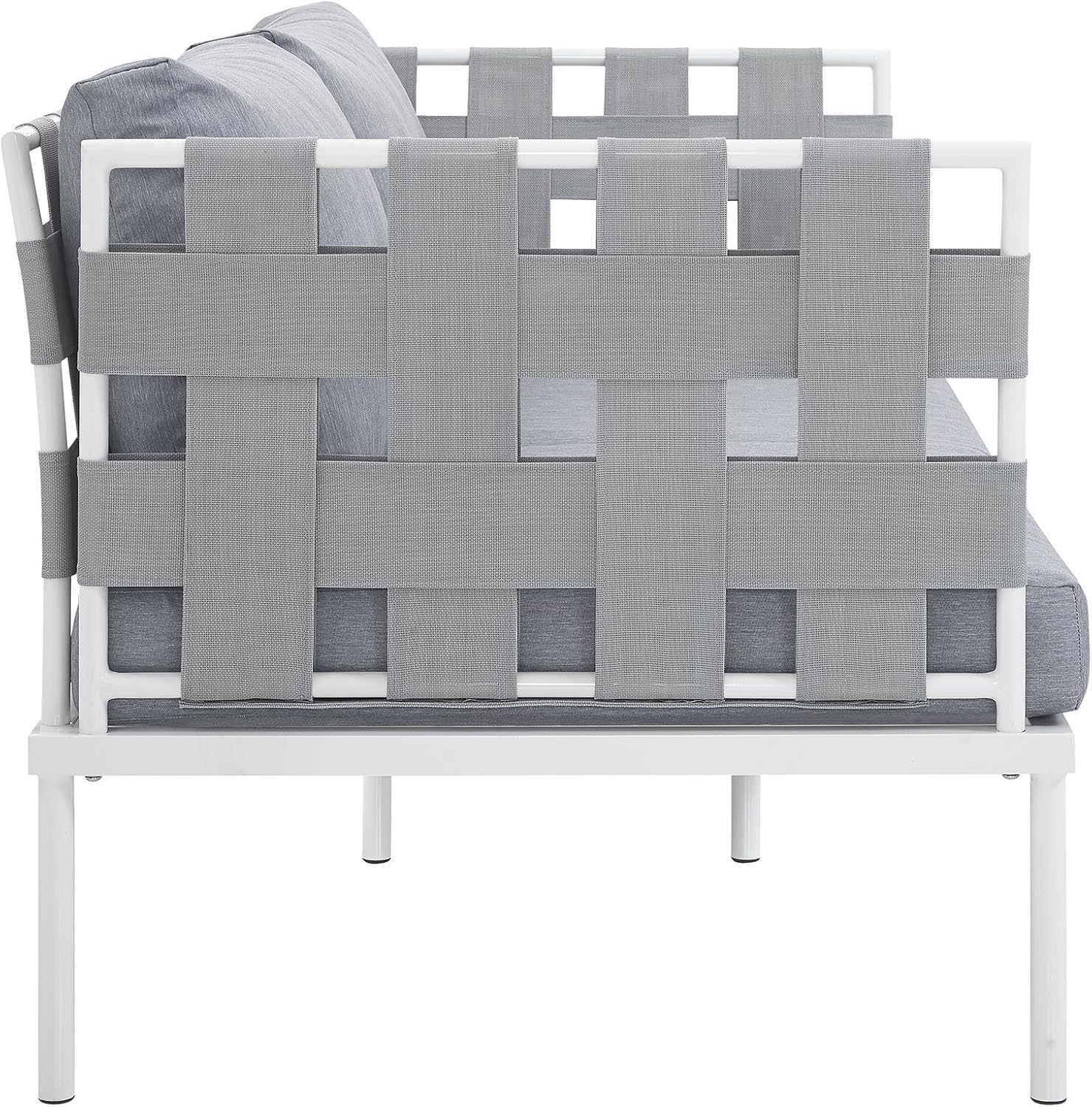 Engage life with Harmony. Enjoy casual conversation under the open sky with an all-weather waterproof furniture set that delivers an exceptional outdoor porch, patio, balcony or garden experience. An exceptional modern furniture set that exceeds expectations, Harmony comes with long-lasting machine washable cushions, silk polyester seat back weave, square powder coated aluminum bases, tempered glass top tables, and non-marking foot caps. A sectional that arranges according to the spontaneous needs of your guests, set your sights on open and inspired moments with the Harmony Outdoor Patio Collection.